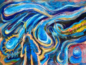 Hybrid Garlic Bulb dilemma. Anti-war. ©2022. Acrylic and ink on canvas paper. ($600. inc. Framed) Ltd Ed. signed framed prints available. Enq.