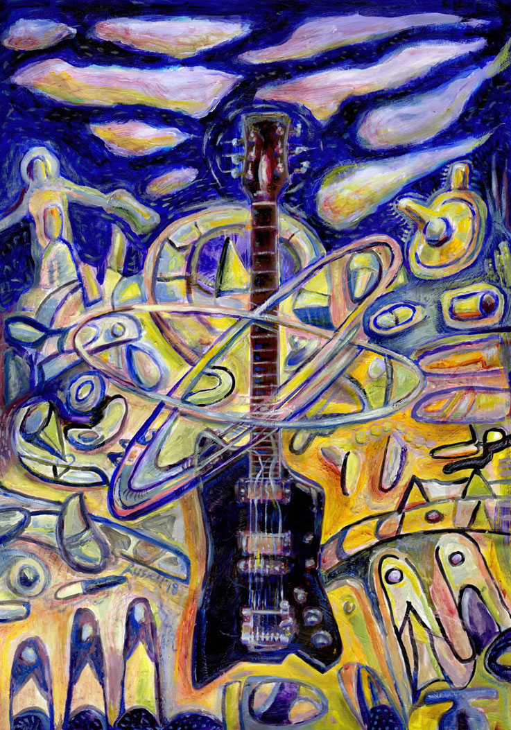 Satellite_of_sound. 2018 Acrylic on canvas paper. 2018. Guitar sounds beam across the suburbs summoning the youth to socialise. Posted on May 3, 2018November 17, 2024