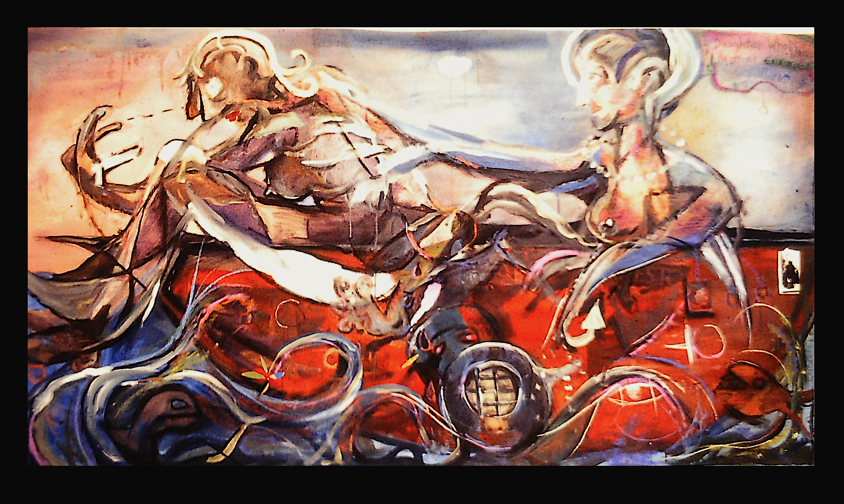 Daughter who dares; mother who cares. 1985l Daughter who dares; Mother who cares – Diver series 1984 mixed media, 2m x 1.6 m (sold) archival print available on request A3 or A2 size. Enquires via email. Posted on December 26, 2017March 2, 2018