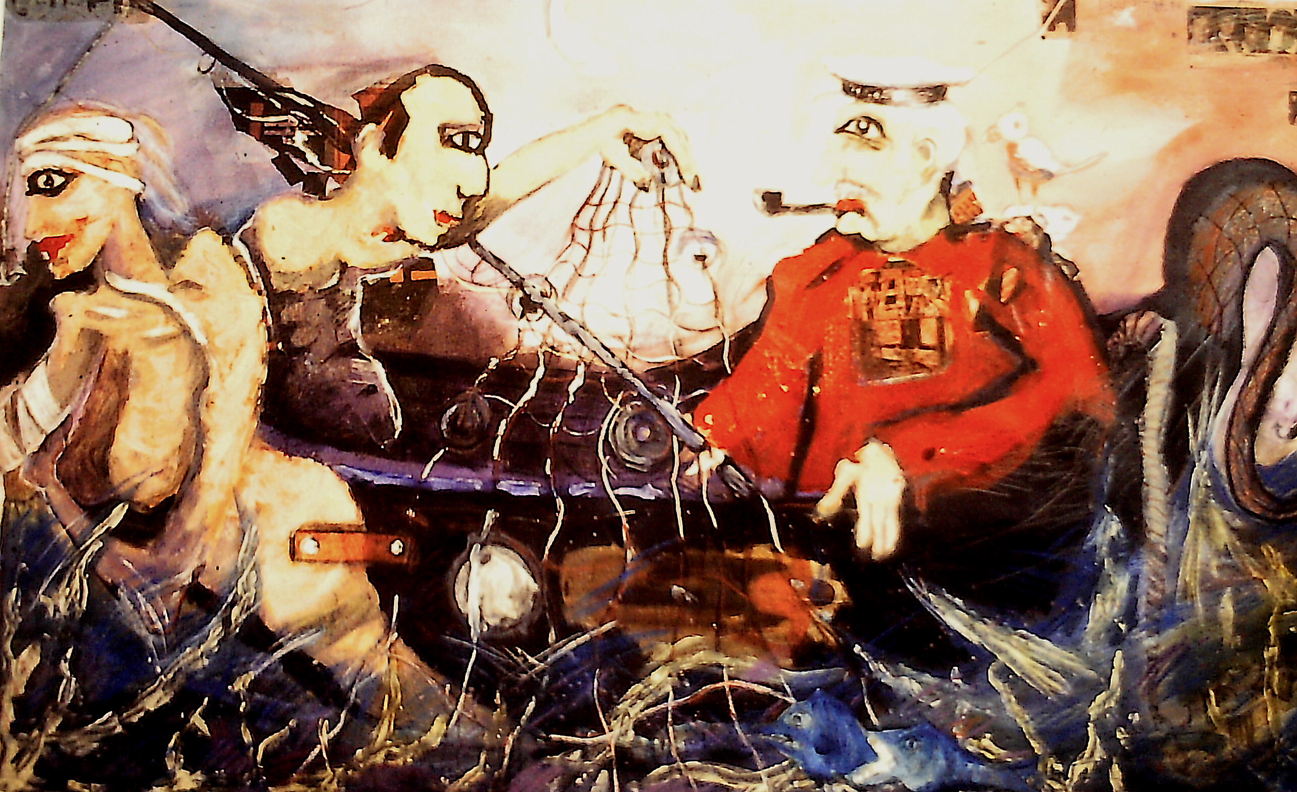 Lost at Sea. 1984 Lost at Sea – Diver series 1984 mixed media, 2m x 1.6 m (sold) archival print available on request A3 or A2 size. Enquires via email. Posted on December 26, 2017March 2, 2018